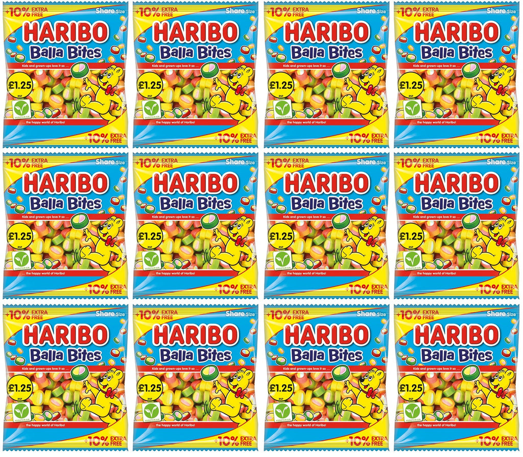 Indulge in the delightful world of Haribo with our 12-pack of Haribo Balla Bites, now with 10% extra free in each pack, offering you even more of the chewy, fruity goodness you love. Each pack contains 154 grams of these irresistible treats, perfect for sharing with friends and family or enjoying on your own.