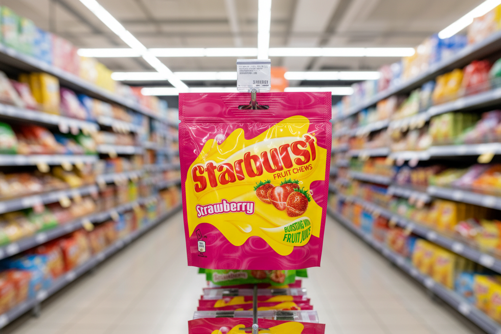 Glucose Syrup, Sugar, Palm Fat, Acid Citric Acid, Strawberry Juice Concentrate (0.48%)*, Modified Starch, Dextrin, Maltodextrin, Flavourings, Emulsifier Lecithin, Colour Beetroot Red
