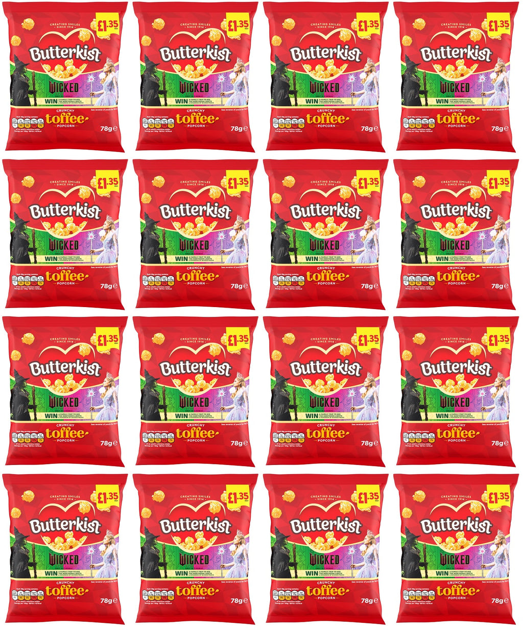 In summary, the 16-pack of Butterkist Crunchy Toffee Popcorn is a must-have for anyone who appreciates the finer things in snacking. With its perfect blend of crunch and sweetness, convenient packaging, and commitment to quality, it's a treat that promises to satisfy and delight with every bite. Treat yourself and your loved ones to the ultimate popcorn experience with Butterkist.