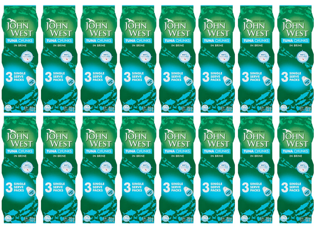 16 x John West Tuna Chunks In Brine 3Pk - 3X80G