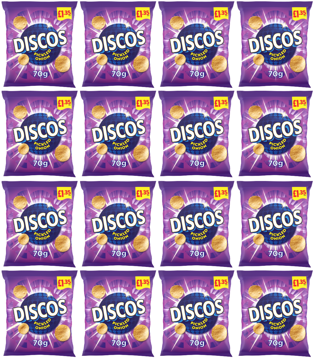 With 16 bags in this pack, you'll have plenty to share or keep all to yourself. Whether you're a long-time fan of pickled onion crisps or trying them for the first time, KP Discos are sure to become a staple in your snack rotation. Treat yourself to the unforgettable taste of KP Discos Pickled Onion crisps and discover why they're a beloved favorite among snack enthusiasts everywhere.
