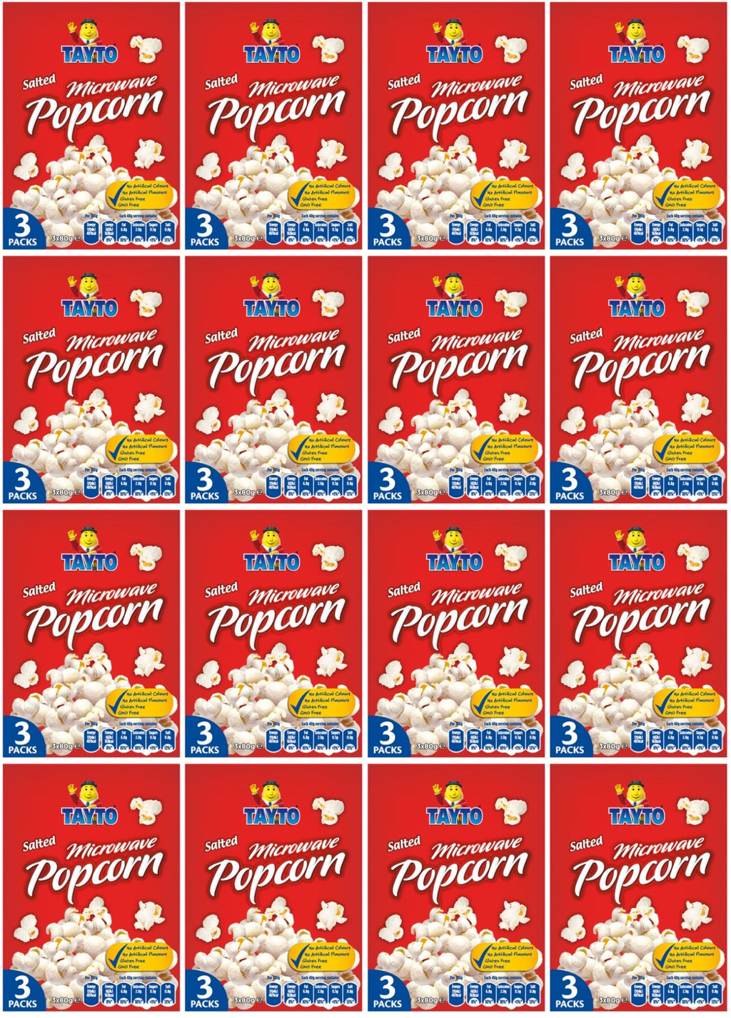 16 x Tayto Salted Microwave Popcorn 3 X 80G