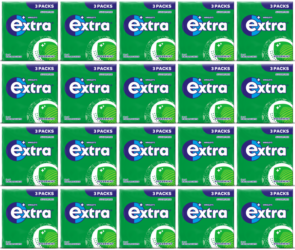 20 x Extra Sugar Free Spearmint Gum 3Pk 3Pk