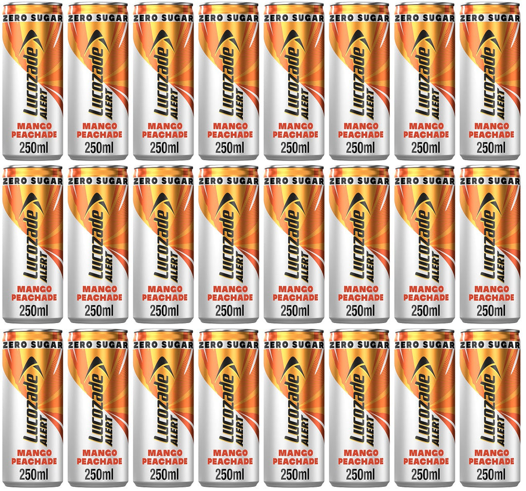 Lucozade Alert Zero Mango & Peach Caffeine Energy Drink – 24 x 250ml