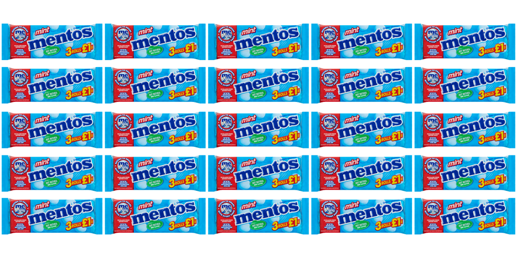 25 x Mentos Mint Roll 3Pk 3X25Gm