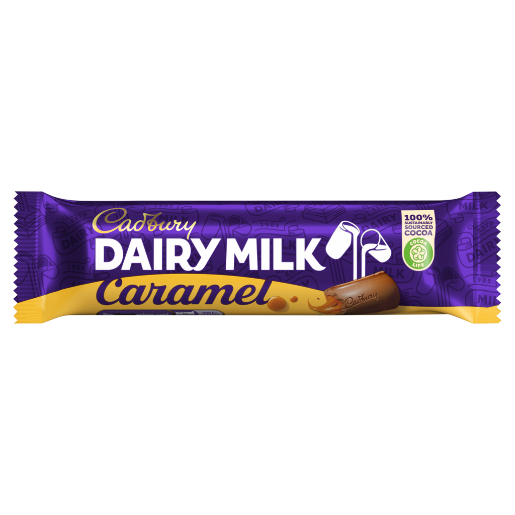 Indulge in the rich, creamy delight of Cadbury Dairy Milk Caramel, a classic treat that combines the smoothness of Cadbury's signature milk chocolate with a luscious, flowing caramel center. This pack contains 48 individually wrapped bars, each weighing 45 grams, making it perfect for sharing, gifting, or simply stocking up your pantry with a beloved favorite.