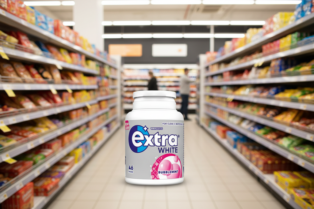 6 x Extra White Bubblemint Sugarfree Chewing Gum Bottle 46 Pieces