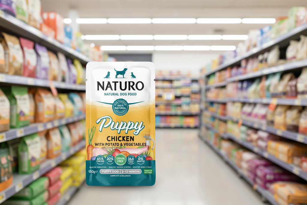 Naturo Puppy Grain Free Chicken & Potato Pouch, a high-quality and nutritious meal specially formulated for puppies. Each pouch contains 150g of delicious chicken and potato recipe, providing your furry friend with the essential nutrients they need to grow and thrive.