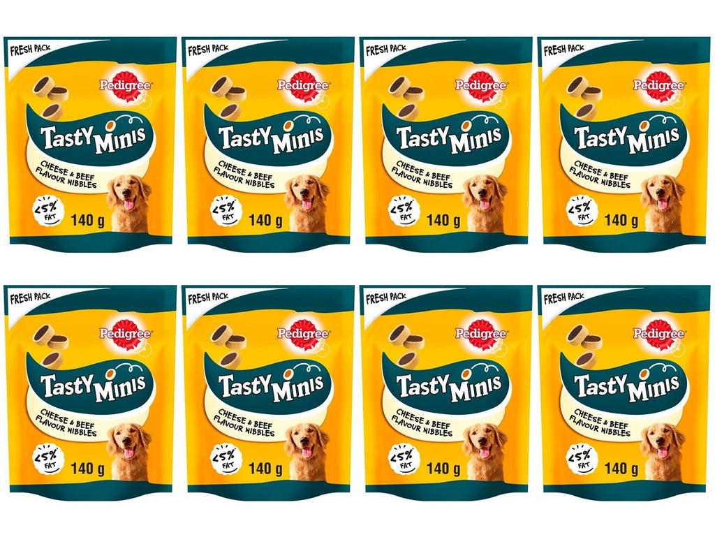 8 x Pedigree Tasty Minis Adult Dog Treats Cheese & Beef Nibbles 140G