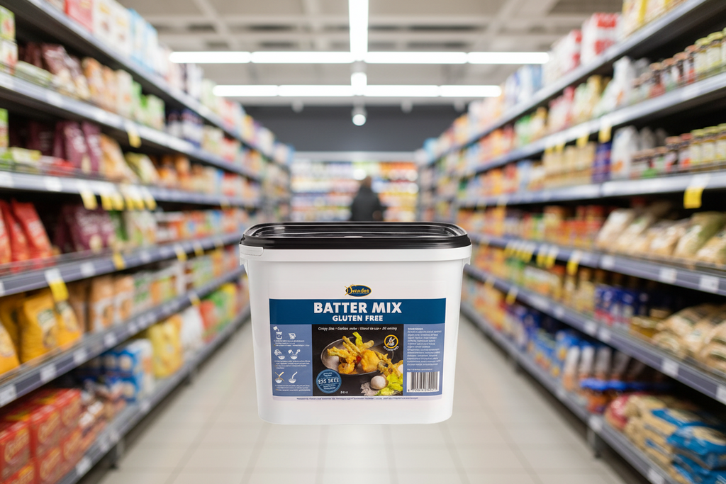 WHEAT flour (GLUTEN), potato starch, salt, rice flour, raising agent: sodium bicarbonate, E450iii.
